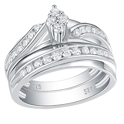 Wuziwen Engagement Ring Wedding Band Set For Women Sterling Silver Cubic Zirconia Marquise